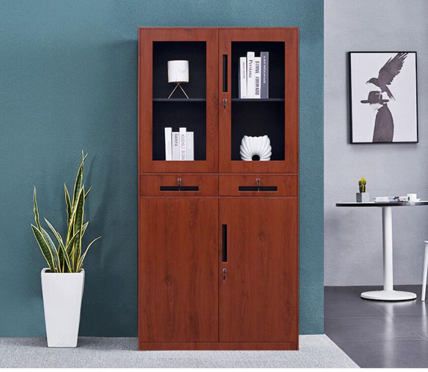Steel Dark Brown Wood Color Four Six Doors Low Cabinet Wardrobe Custom Metal Clothes Cabinet
